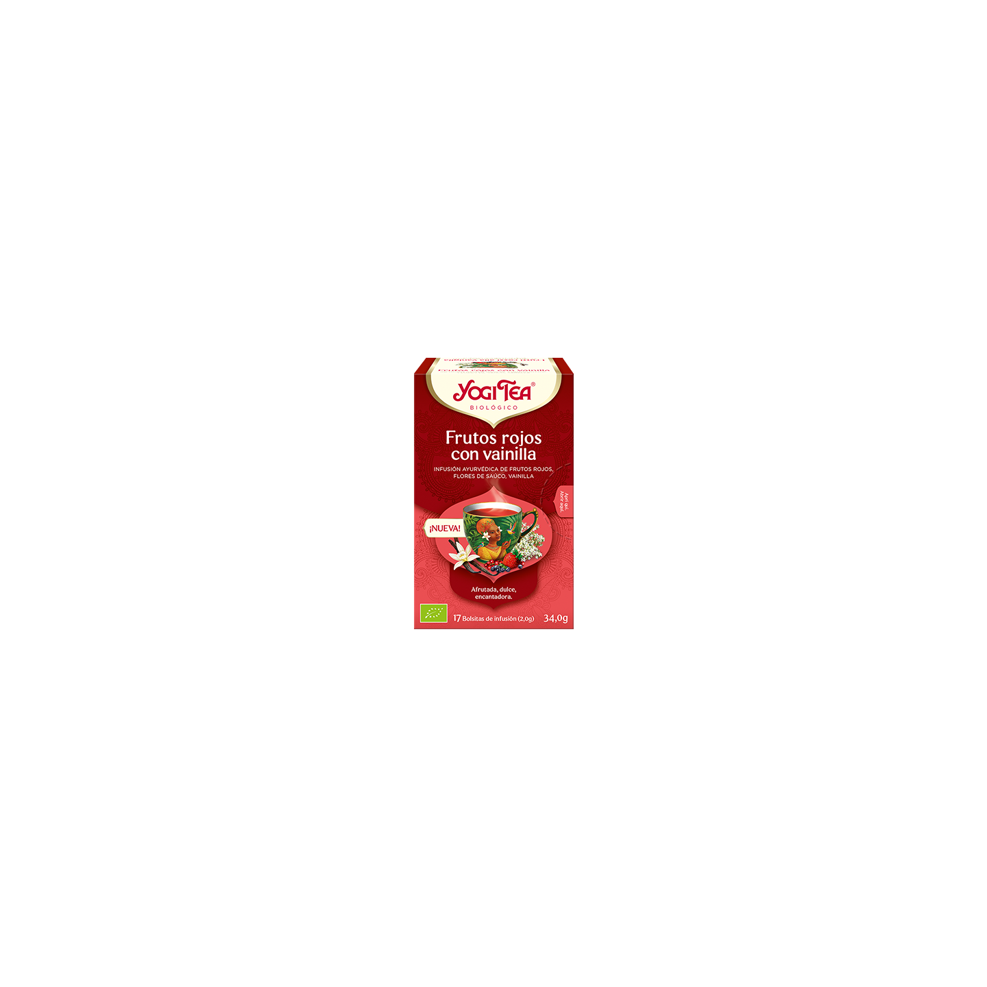 Con esta infusión de frutos rojos con vainilla de Yogi Tea disfrutarás de una experiencia afrutada y relajante que te invita a desconectar en cualquier momento, combinando el dulzor natural de las frutas rojas con la suavidad de la vainilla en una bebida que estimula el bienestar y el placer en tus pausas diarias.