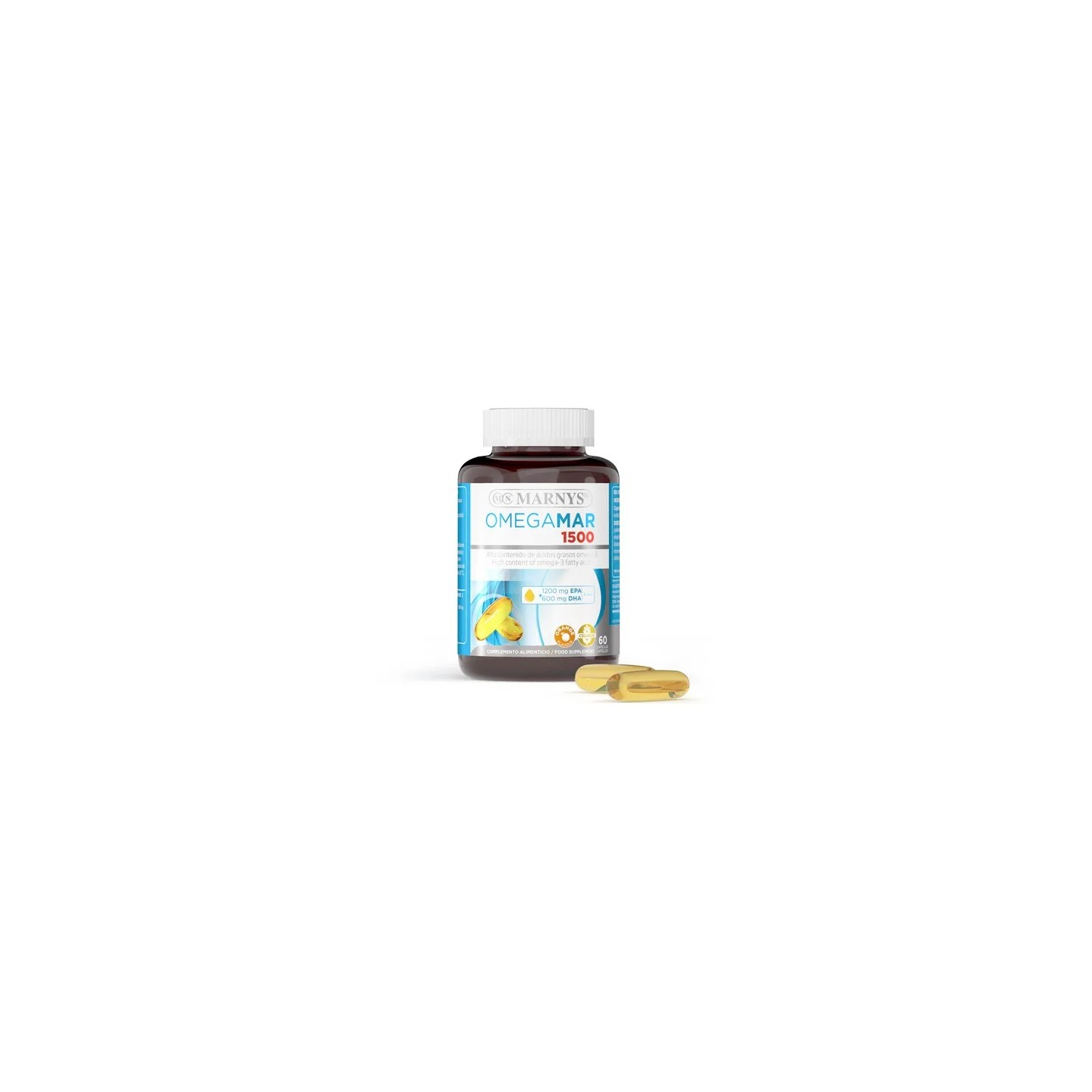 Omegamar 1500 mg es un complemento alimenticio en formato cápsulas que contiene los ácidos grasos Omega 3 EPA y DHA. Estos ácidos proceden principalmente del aceite de pescados como las anchoas, las sardinas y la caballa, conocidos por su elevada concentración de Omega 3.