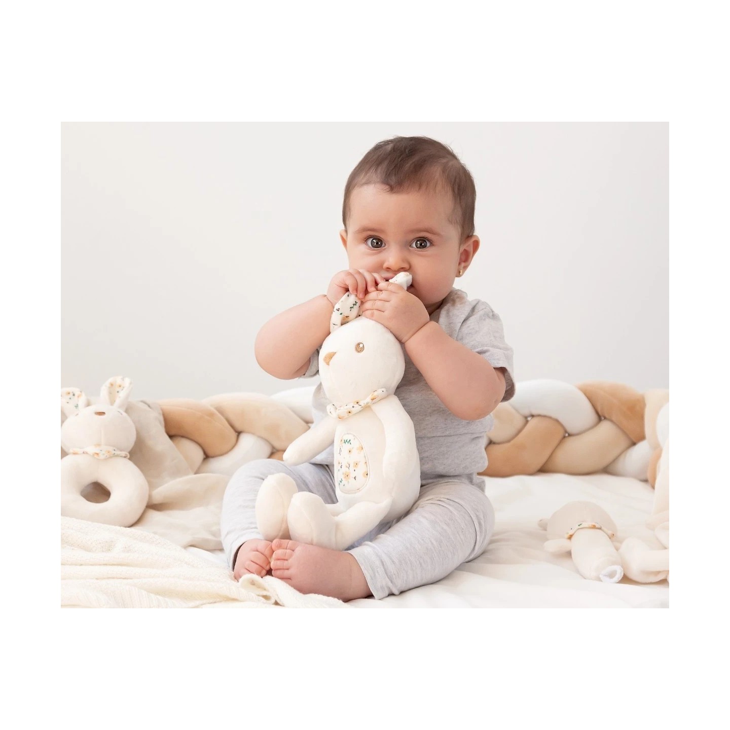 Este adorable conejito de peluche está diseñado para dar mucha ternura a tu bebé. Con su textura suave blandita, se convertirá en su compañero inseparable, ideal para abrazos, juegos y momentos de calma.