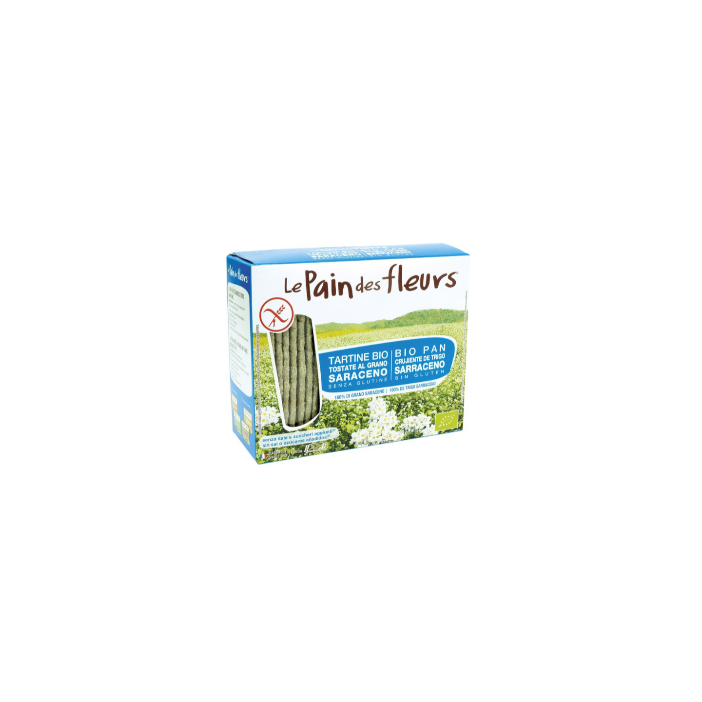 El Pan crujiente con trigo sarraceno Bio sin gluten de Le Pain des Fleurs es ligero, crujiente y reemplaza el pan en cualquier momento del día. Es un producto rico en magnesio, hierro y fibra. Además, no contiene azúcares añadidos ni sal.