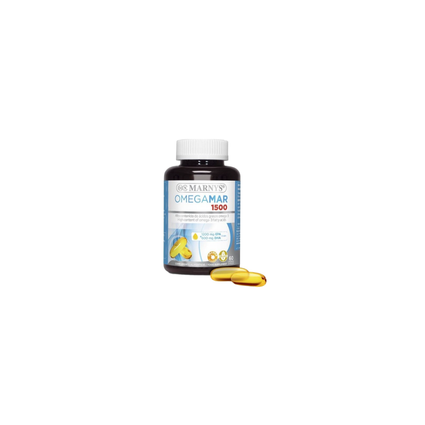 Omegamar 1500 DHA+EPA de Marnys es un complemento alimenticio en formato cápsulas que contiene los ácidos grasos Omega 3 EPA y DHA. Estos ácidos proceden principalmente del aceite de pescados como las anchoas, las sardinas y la caballa, conocidos por su elevada concentración de Omega 3.