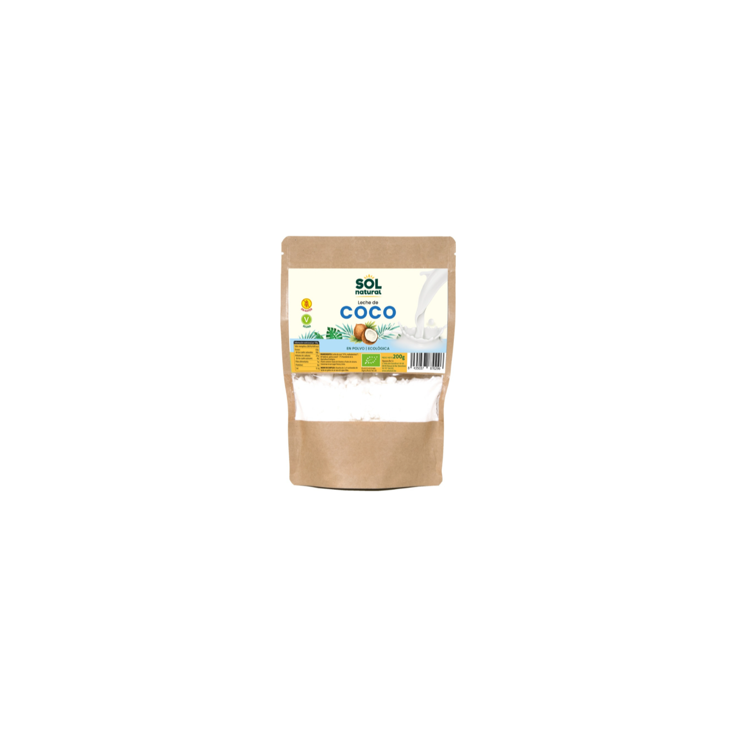 Leche de coco en polvo Bio de Sol Natural es una leche muy práctica, elaborada de manera tradicional, ideal para preparar bebidas, batidos, jugos y recetas, ya que les aporte un rico sabor. Esta leche vegetal es elaborada en su totalidad con cocos procedentes de la agricultura ecológica y sin aditivos.