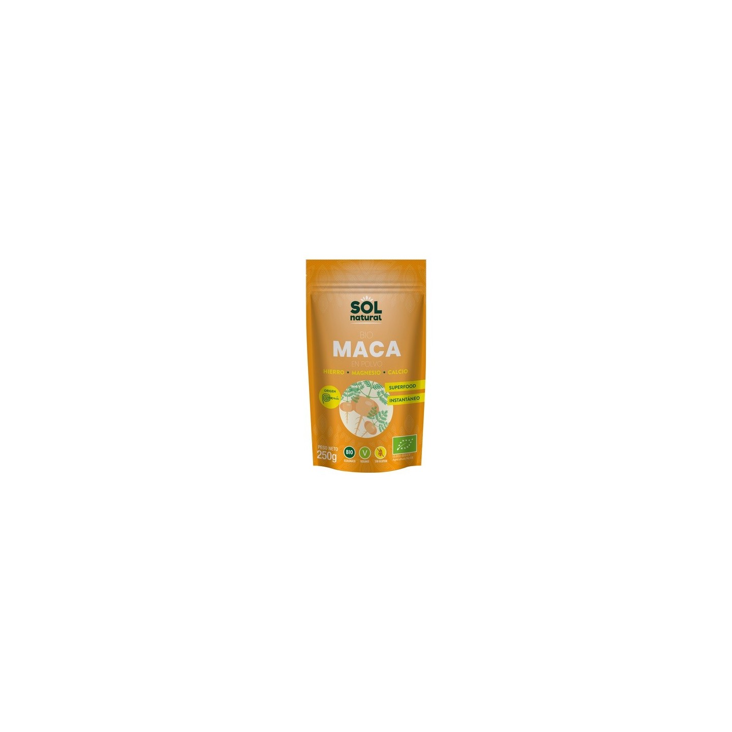 Maca Bio de Solnatural, es benéfico para la reducción del estrés y el cansancio, regular las hormonas.