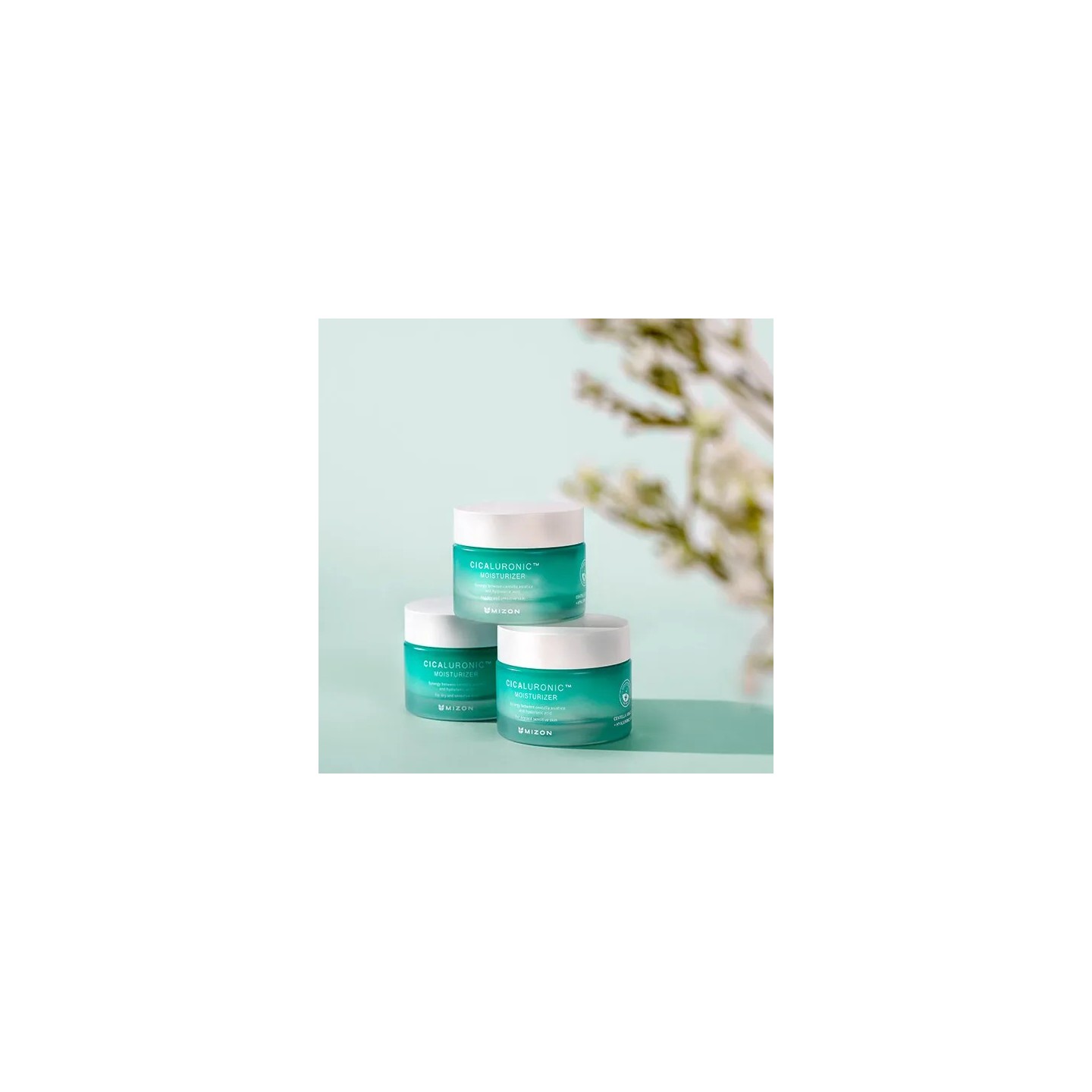 Crema hidratante con ingredientes hidratantes y calmantes para un efecto hidratante más profundo. Contiene el Cicaluronic Complex exclusivo de Mizon con centella asiática y 8 tipos de ácido hialurónico para calmar y nutrir la piel.