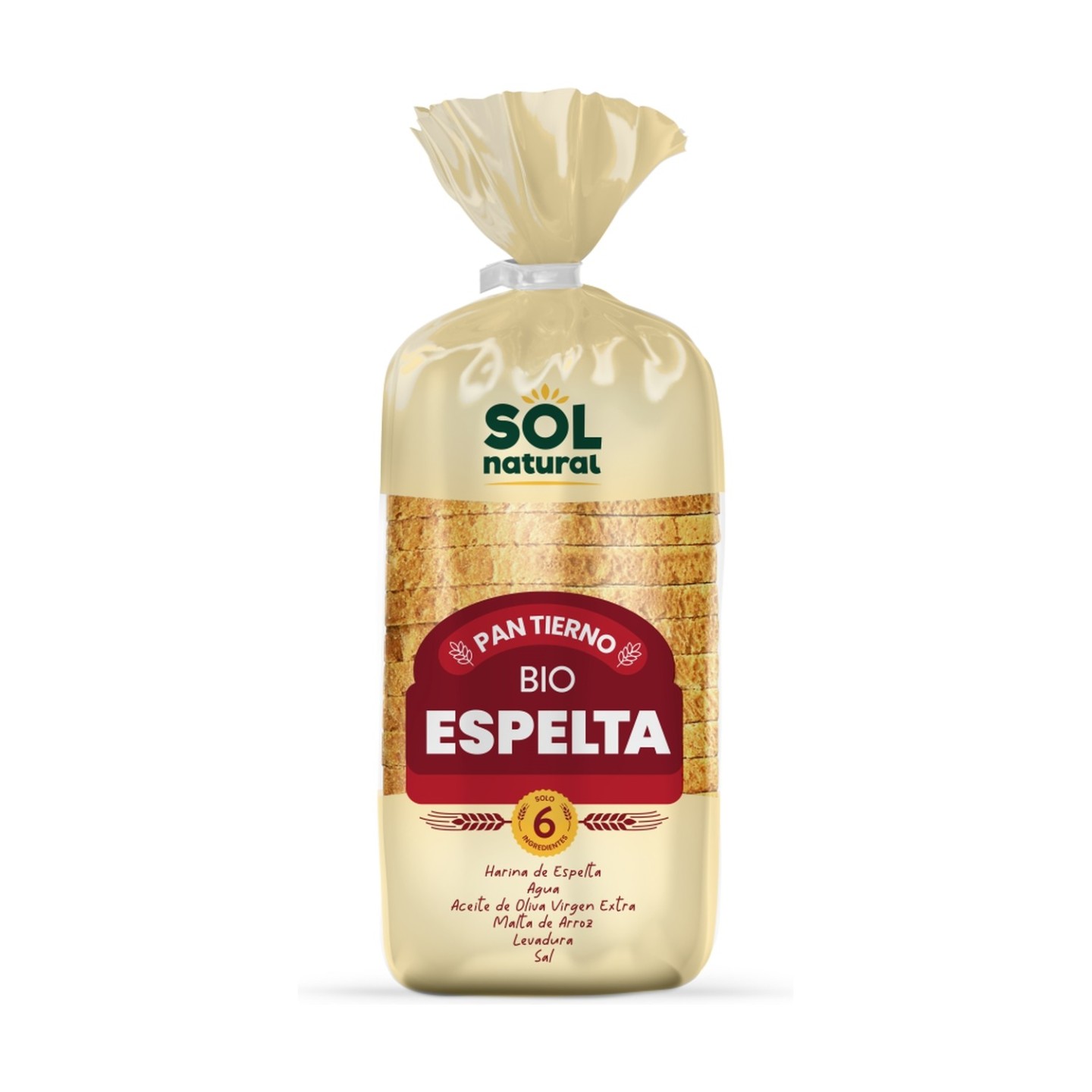 Harina de Trigo espelta* (70%), Agua, Aceite de oliva* virgen extra (5%), Malta de arroz* (harina de arroz*, Malta de cebada*), Levadura*, Sal. Tratado con alcohol* etílico solo en superficie. (*) Procedente de Agricultura Ecológica
