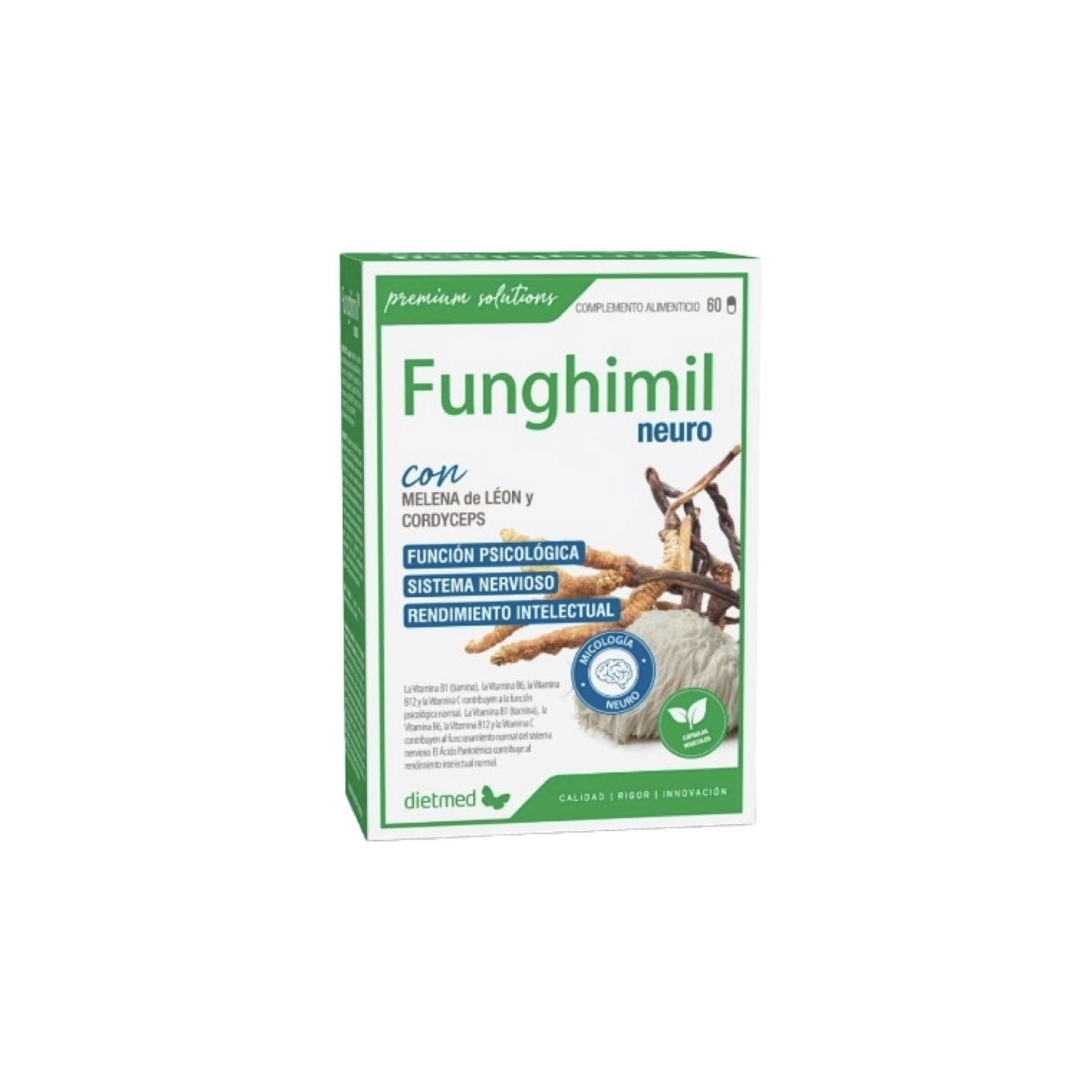 Ganoderma lucidum (Reishi: extracto conteniendo al menos 20% de polisacaridos), capsula vegetal (hidroxipropilmetilcelulosa), Hericium erinaceus (Melena de Leon: extracto concentrado), Cordyceps sinensis (Cordyceps: extracto conteniendo al menos 40% de polisacáridos), Passiflora incarnata (Pasiflora; extracto seco de las partes aéreas conteniendo al menos 4% de vitexina), agente de carga: celulosa microcristalina, acido L-ascorbico, antiaglomerante: sales magnésicas de ácidos grasos, oxido de cinc, D-pantotenato calcico, antiaglomerante: dioxido de silicio, cianocobalamina (0,1%), piridoxina clorhidrato, clorhidrato de tiamina, capsula vegetal: óxido de hierro rojo (colorante).