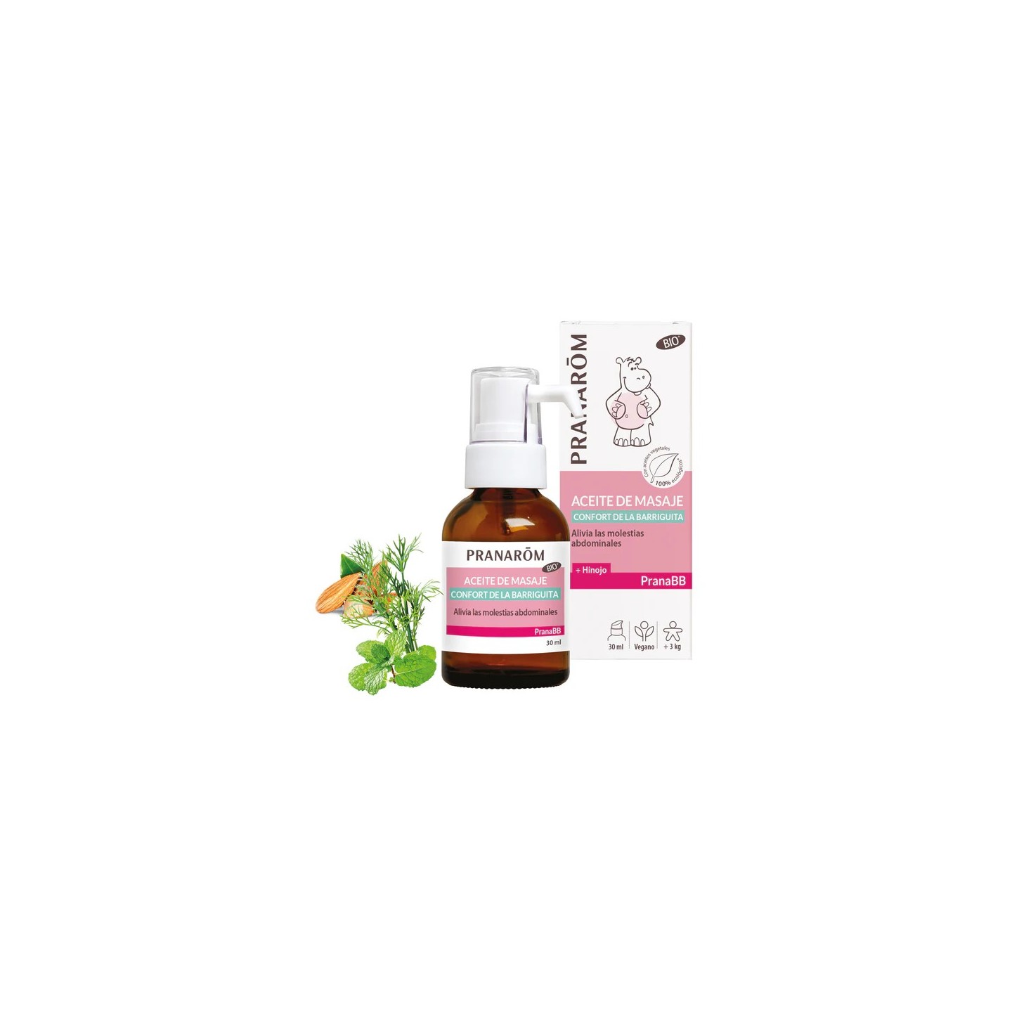 El aceite de masaje Confort de la barriguita está indicado para un masaje reconfortante del bebé durante la digestión. Está enriquecido con aceites esenciales de hinojo, jengibre, naranja dulce y hierbabuena, que aportan bienestar a los más pequeños durante la digestión. Además, contiene aceites vegetales de coco, almendras dulces y girasol, que nutren y protegen la piel sensible del bebé.