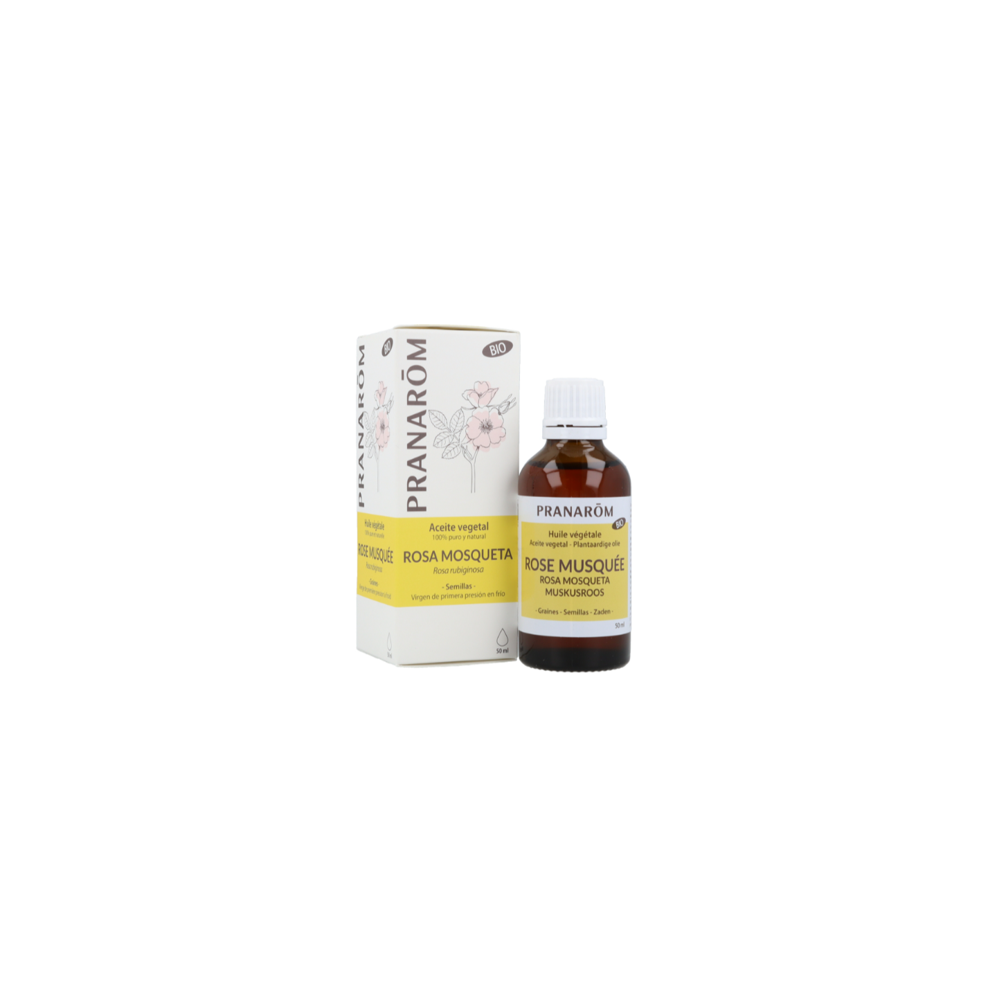 Aceite virgen de Rosa Mosqueta de Pranarom obtenido por primera presión en frío de semillas de rosa mosqueta. La rosa mosqueta es un clásico ineludible para la piel y para el conjunto del organismo.